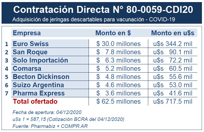 Nueva contratación en jeringas, Estado. Enterate quien ofertó. #ContrataciónPública #ComprAR #Jeringas #PharmaExpress #SuizoArgentina #EuroSwiss #Licitaciones #Farma #Pharmabiz