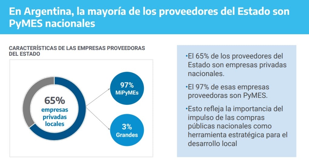 En ese marco, el ministro de Desarrollo Productivo, Matías Kulfas, subrayó que en el mundo «hay una sobrada experiencia respecto a la relevancia que tiene el poder de compra de los Estados para fomentar el desarrollo productivo, industrial y tecnológico. Y señaló ejemplos en diferentes naciones. El funcionario indicó que en la Argentina las compras públicas explican el 13% del PBI, lo que expresa con claridad su relevancia. Y además puntualizó el caso de Sinergium Biotech, una empresa que «se desarrolló mediante las compras públicas de productos biotecnológicos, por parte del Ministerio de Salud«.