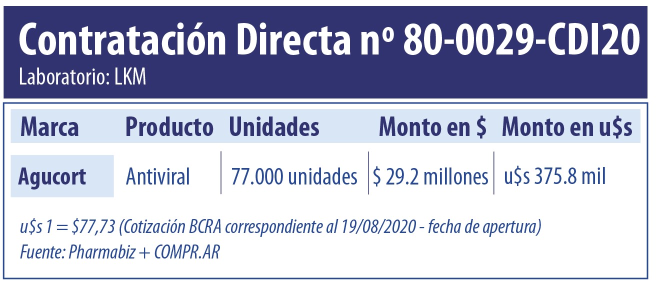 Ahora, en este proceso exclusivo, la compañía propiedad de la canadiense Knight Therapeutics volvió a cotizar por medio de su brazo LKM y con la marca Agucort. Su oferta había quedado de lado el mes pasado en función de que el precio no resultaba concordante con el valor de referencia SIGEN.
