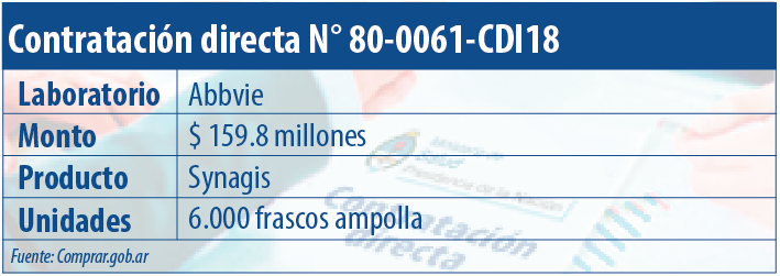 El Estado reabrió la Contratación Directa que había caratulado como “desierta” a principios de noviembre y que apuntaba a la adquisición del anticuerpo monoclonal Synagis de la biotecnológica Abbvie. Ver contratación.
