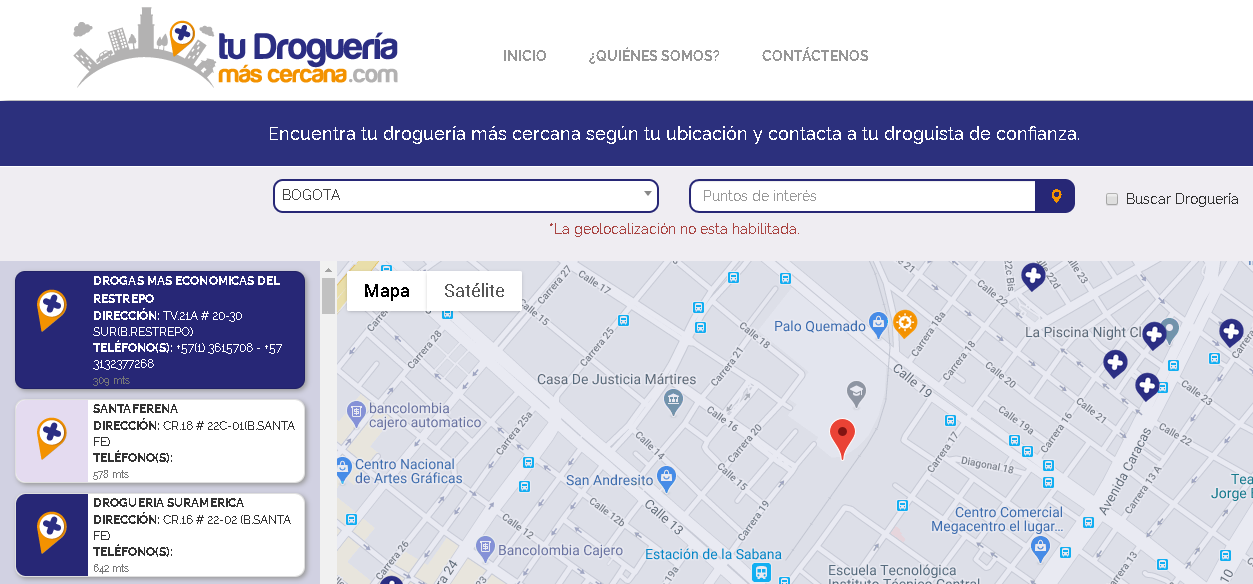 La colombiana Cooperativa Nacional de Droguistas Detallistas (Coopidrogas) lanzó Tu Droguería Más Cercana, una red de farmacias virtual. A través de una app, los usuarios pueden encontrar el punto de venta más próximo entre 7.400 locales en 680 municipios.