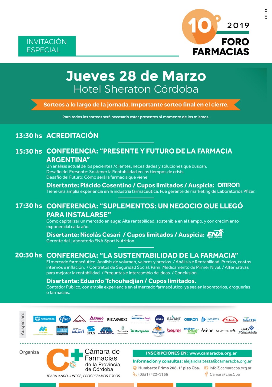 Según el cronograma pautado, Cosentino tomará el micrófono a las 15:30hs para encabezar el encuentro que fue dado en llamar «Presente y futuro de la farmacia argentina» y que estará dirigido principalmente a los puntos de venta que operan en la provincia de Córdoba.