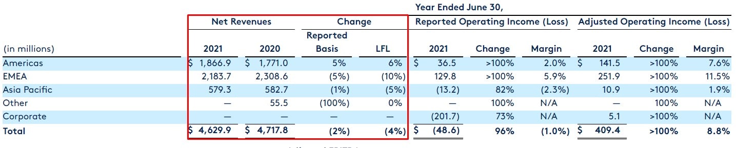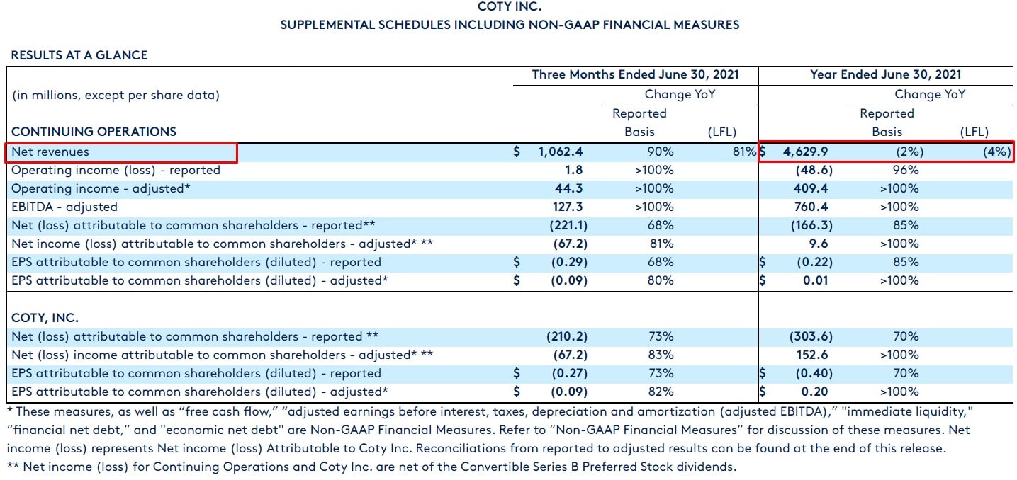 La norteamericana Coty publicó hoy sus resultados financieros correspondientes al año fiscal 2021. A pesar de su plan estratégico apoyado en mayores controles de costos y la búsqueda de una posición de mercado más competitiva, la multi registró números en rojo. Ver artículo Coty comparte estrategia a inversores. Ver Press Release.