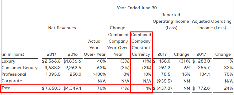 En cuanto a sus unidades de negocios, a la que le fue viento en popa fue a Professional, que ascendió un 10% en facturación, en comparación con el año pasado. Esta performance estuvo respaldada por la fusión con los negocios de Fragancias, Cosméticos, Salon y Color Profesional de P&G, que se completó en octubre del 2016. Ver artículo.