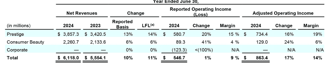 El documento detalla que en los últimos doce meses, la unidad de Prestige marcó ingresos por u$s 3.857,3 millones, lo que arroja un incremento del 14%. Este negocio comprende a fragancias como BurberryGucci, TiffanyHugo Boss, Davidoff y Lacoste. Por su parte, Consumer Beauty, o su segmento masivo, registró una variación del 6%, con una facturación de u$s 2.260,7 millones. Aquí la empresa comercializa etiquetas como Sally HansenRimmel, Max Factor, CoverGirl y Adidas.