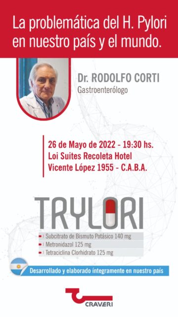 Después de largos años de desarrollo y tras una iniciativa que surgió de parte de los profesionales médicos, que hicieron notar la falta de este producto en el mercado local, el laboratorio nacional Craveri lanzó Trylori, en la Argentina. Se trata de un antibiótico para combatir el H. Plyori. La presentación fue ayer, jueves en el hotel Loi Suites Recoleta.