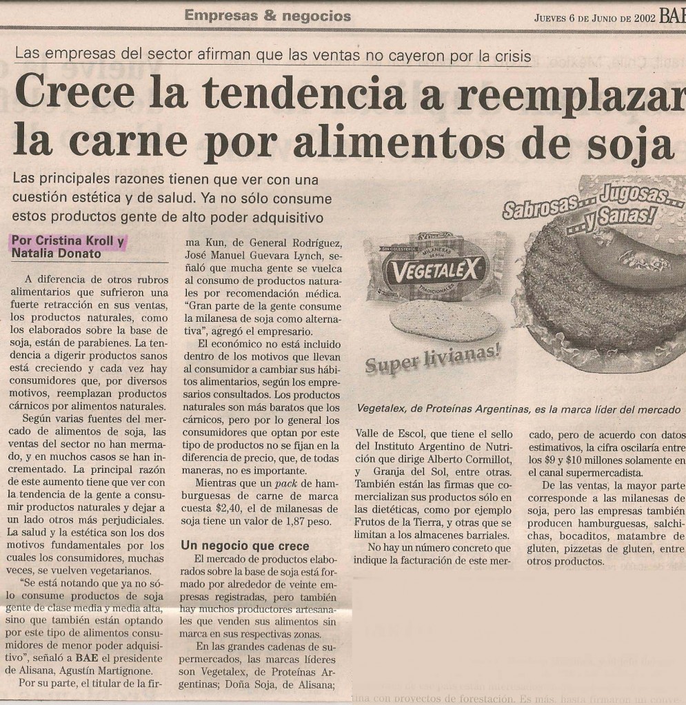 A diferencia de otros rubros alimentarios que sufrieron una fuerte retracción en sus ventas, los productos naturales, como los elaborados sobre la base de soja, están de parabienes. La tendencia a digerir productos sanos está creciendo y cada vez hay consumidores que, por diversos motivos, reemplazan productos cárnicos por alimentos naturales.