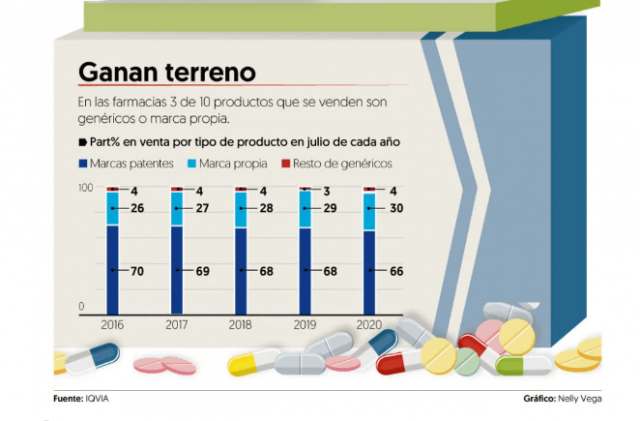 Según datos de la consultora especializada IQVIA, en los últimos ocho años se cuadruplicó el volumen de venta de medicamentos genéricos y de marcas propias en ese país. Esto implica que tres de cada 10 productos que se comercializan en las farmacias llevan su nombre.