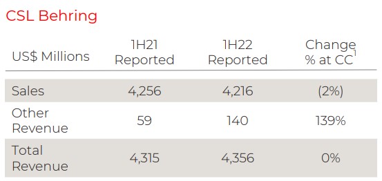 CSL Behring publicó sus resultados semestrales el mié 16/02.