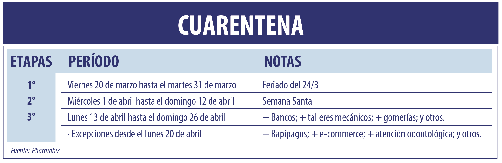 A partir de hoy lunes 20 de abril, levantaron la persiana comercios como ópticas y establecimientos de cobranza de servicios e impuestos, tales como Rapipago; Pago Fácil; y otros. Además, se abrió la venta por parte de comercios minoristas, a través del e-commerce, vía telefónica y otros mecanismos que no requieran contacto físico y únicamente mediante la modalidad de entrega a domicilio.