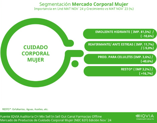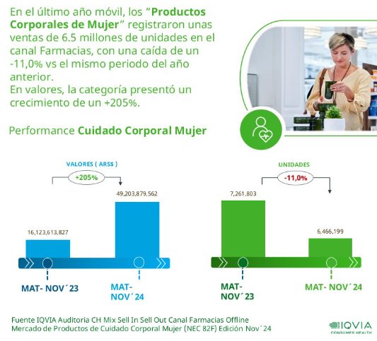 En el 2024 el consumo registró un fuerte derrumbe tanto en los canales de supermercados como en las farmacias. Y en la categoría de productos corporales de mujer la baja fue de dos dígitos, según datos de IQVIA. Ver LinkedIn