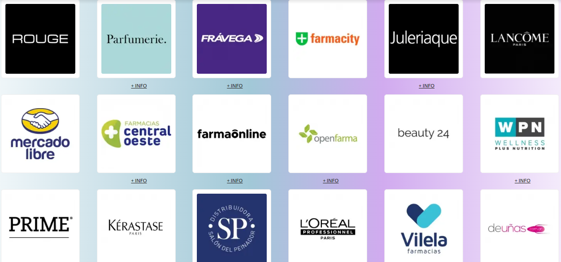 Entre los retailers de todo el país que participan figuran Farmacity; Farmaonline; Juleriaque; La Parfumerie; Rouge; Soy Tu Farmacia; Farmacias del Puente; Farmacia General Paz; Pigmento; Chester; Uomax; Farmaplus; Salud Global; Central Oeste; Get the Look; La Franco; Farmacias Red; TKL; Farmacia Pacheco; Selma; Raffe Perfumerías; Farmacias Ponte; Farmacias Daniotti; Vassallo; y Farmalife, entre otros.