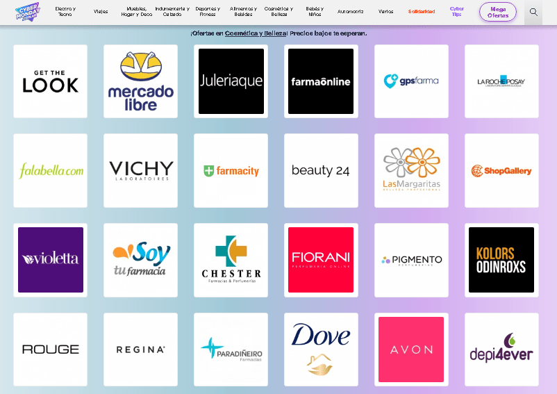 Durante los tres días participan distintos marketplaces, de cadenas de farmacias, perfumerías y marcas de cosmética, cuidado personal e higiene. En categorías como la de Cosmética y Belleza figuran los retailers Farmacity; Central Oeste; Openfarma; Chester; Farma 365; La Franco; Vassallo; Farmacia Selma; y las plataformas GPS Farma; Farmaonline y Pedidosfarma.