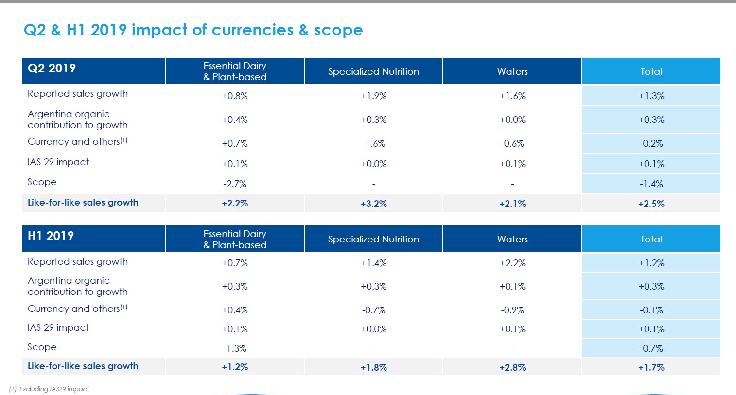 La Argentina mostró protagonismo en los resultados semestrales de Danone, la que le dedicó un apartado propio. La multi hizo referencia a la hiperinflación del mercado local y al impacto sobre su desempeño luego de aplicar el IAS 29 según las normas internacionales de información financiera.