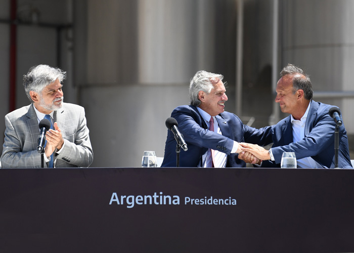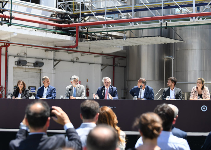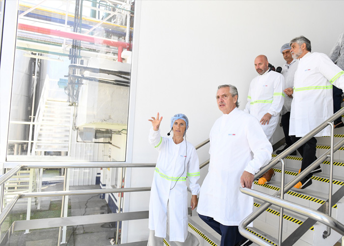 El presidente Alberto Fernández encabezó este mediodía, en la planta de Danone ubicada en la localidad bonaerense de Longchamps, el lanzamiento de una nueva línea de yogures producidos a partir de una cepa probiótica desarrollada por investigadoras e investigadores del CONICET.
