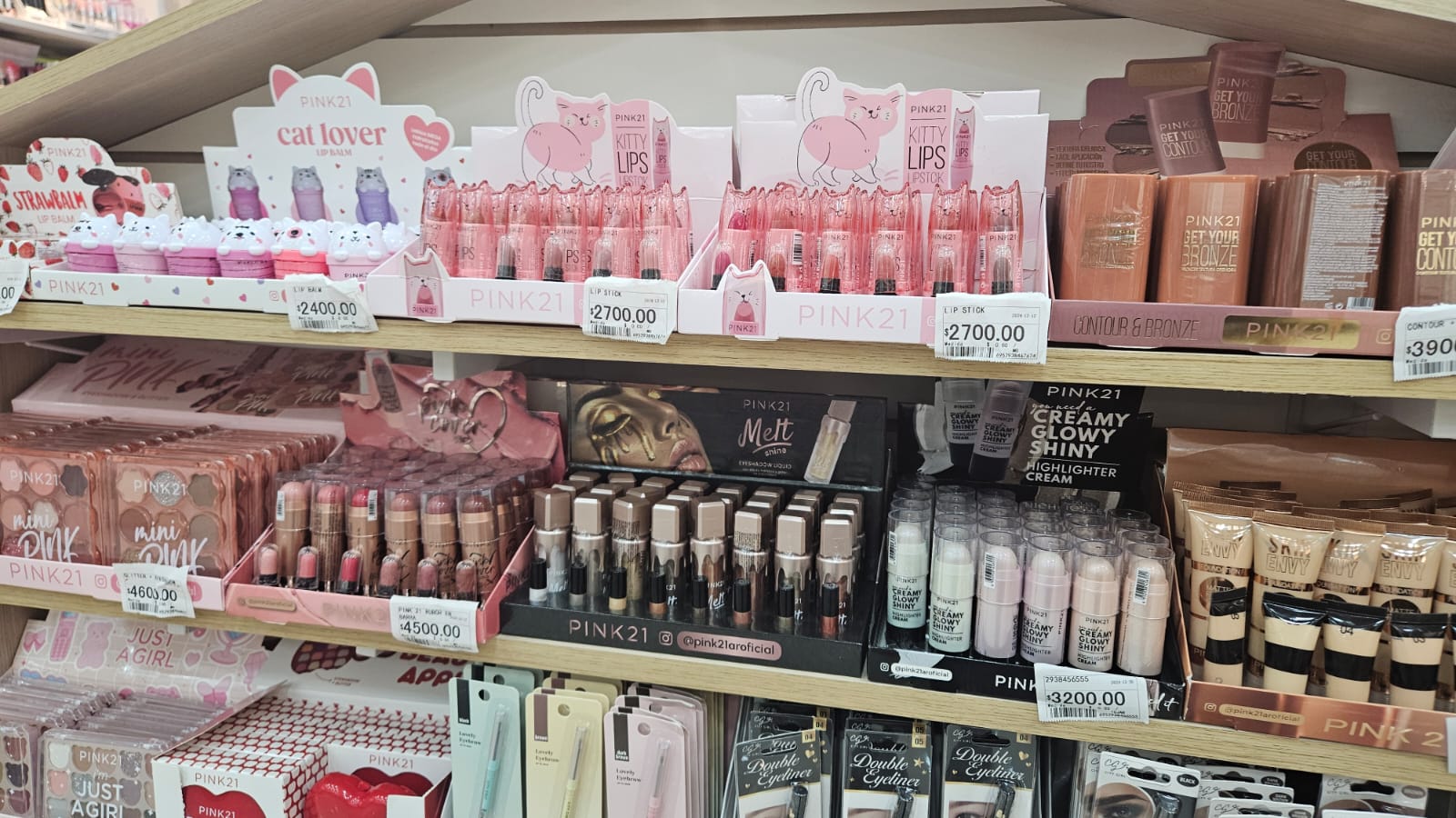Otra de las característica de las marcas exhibidas en DD-2, es que casi todas tienen impresos en un celofán externo, el sello de la ANMAT, a fin de demostrar, que las mismas están aprobadas por la autoridad regulatoria local. Una de ellas es Pink 21, la que incluye labiales, sombras de ojos, máscaras, y rubores, entre otros. Además de la venta en sucursales, la etiqueta cuenta asimismo con su propia plataforma online. De esta manera, la marca cuenta con productos como labiales a un valor menores a $2.000 (u$s 1,9). Ver Pink 21