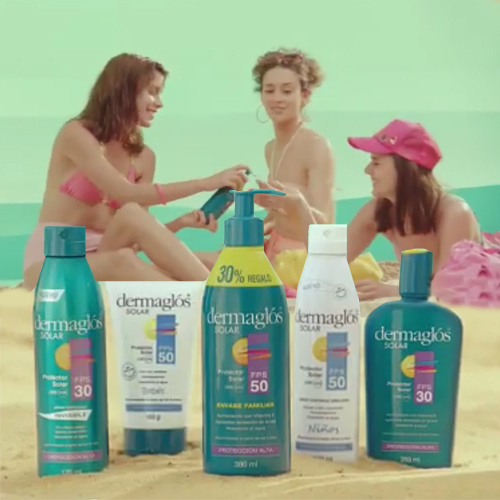 El spot se inscribe en una temporada híper recesiva en la que el laboratorio, propiedad de la familia Roviralta también lanzó la nueva presentación Dermaglós FPS 50 facial color, una crema para el rostro que apunta a unificar el tono de la piel. Ver artículo