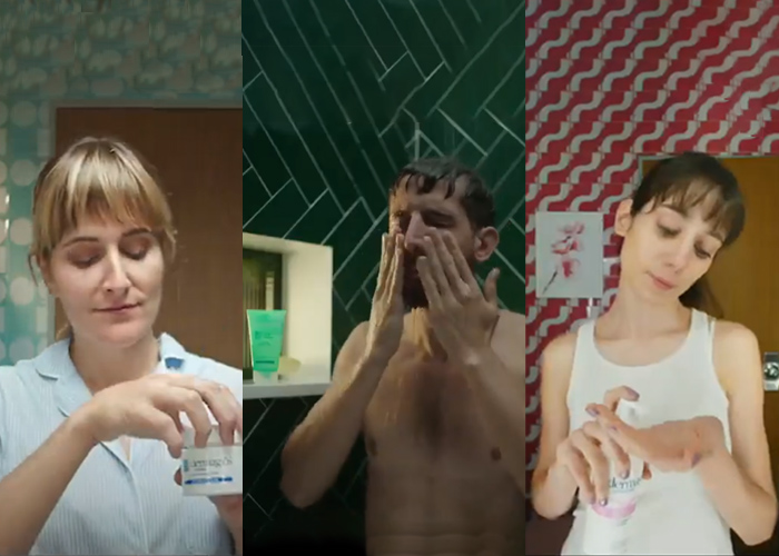 Todo el espectro de pieles aparece en el comercial, inscriptas en rutinas de disfrute como la del desayuno, la de un picadito de fútbol, la del cine en casa con pochoclo incluido, y más. Las actividades se entremezclan con los pasos de limpieza e hidratación tanto facial, de las manos como corporal.