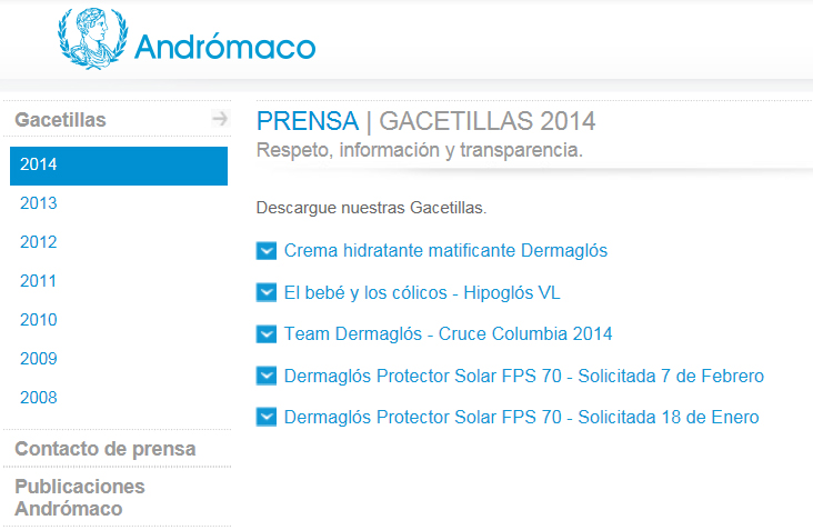 En su página web muestra que su último comunicado relativo a este tema fue posteado en el mes de febrero. Posteriormente a ello, sólo se ocupó de hacer saber que el «Team Dermaglós» ganó El Cruce de los Andes y las bondades de su crema matificante. Ver debajo.