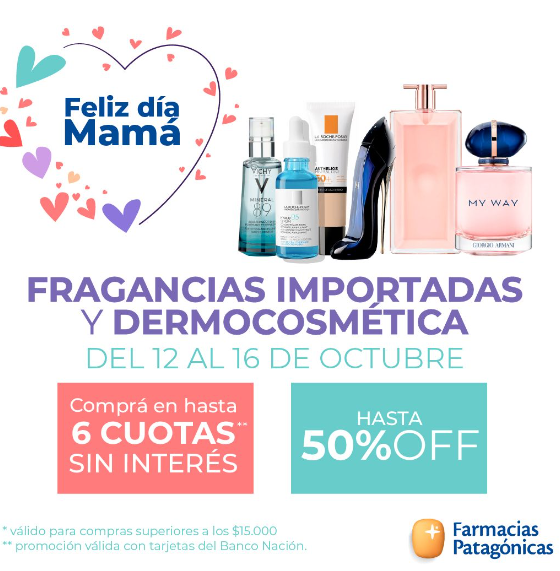 En el sur de la Argentina, Farmacias Patagónicas, que está presente en Trelew, Rawson, Puerto Madryn, Esquel y Comodoro Rivadavia, propuso hasta un 50% off en fragancias importadas y dermocosmética, las categorías más caras para esta fecha. Además, en este segmento también lanzó 6 cuotas sin interés a fin de acelerar la decisión de compra. Por su parte, en otros rubros la cadena ofreció regalos por compra y 3 cuotas sin interés. Ver Farmacias Patagónicas