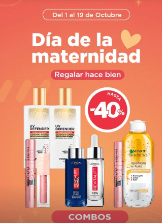 Farmacity, que recientemente relocalizó su local número uno, lanzó descuentos de hasta el 40% en su sitio web. Allí la cadena que tiene fuerte presencia en la Ciudad de Buenos Aires propuso una serie de combos de skin care y maquillajes para el «día de la maternidad«.