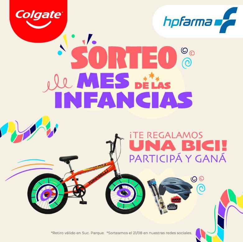 En la misma plaza, HP farma también celebra esta fecha de consumo junto con Colgate. La cadena de farmacias que forma parte del Hospital Privado regala una bicicleta para los seguidores que participen del sorteo en las redes sociales. Además, activó rebajas de un 15% en productos seleccionados de fragancias de Disney, entre otros artículos. Ver Instagram