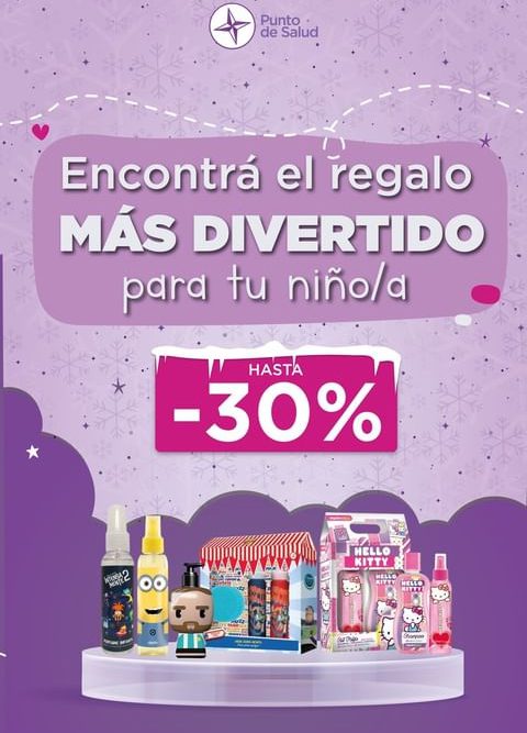 La sureña Punto de Salud lanzó una rebaja de hasta el 30% en artículos seleccionados como champúes y body splash infantiles, entre otros. Asimismo, el retailer de la familia Santoro presentó un sorteo junto a Mejoral para niños, la marca de analgésicos del nacional Gramon. La cadena invitó a participar por un set de pinturas, a través de la interacción con la cuenta de la cadena, así como también del laboratorio, dándole me gusta, comentando el posteo y etiquetando a otras personas. Ver Instagram