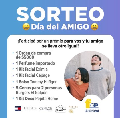 En esa misma plaza, General Paz fue otro de los jugadores que eligió sortear productos. El retailer propiedad de Walter Pernochi lanzó premios dobles, tanto para el ganador como para un amigo. Se participa por una orden de compra por $5.000 (u$s 36,82); un perfume importado; un kit facial de Eximia y otro de Cepage; un bolso de Tommy Hilfiger; cinco cenas para dos personas y un kit de decoración.