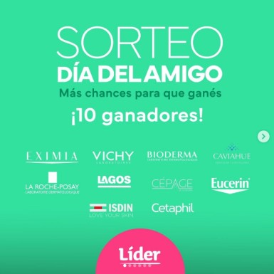 Líder, una de las cadenas que compite en el mercado cordobés, también lanzó un sorteo. La firma de la familia Tiscornia eligió una canasta de productos de dermocosmética para sus ganadores, con el objetivo de fidelizar clientes y agrandar su base de seguidores en las redes. Entre las marcas listadas se pueden mencionar a Vichy; La Roche Posay; Eucerin; Isdin; Cetaphil; Caviahue; Eximia; Bioderma; Lagos y Cepage.