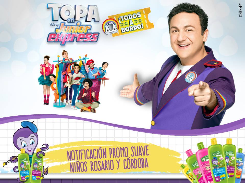 Otra de las marcas de shampoo que salió al ruedo fue Suave, que organizó un concurso para participar por entradas al espectáculo que Topa, la estrella infantil de Disney, realizará en Rosario.