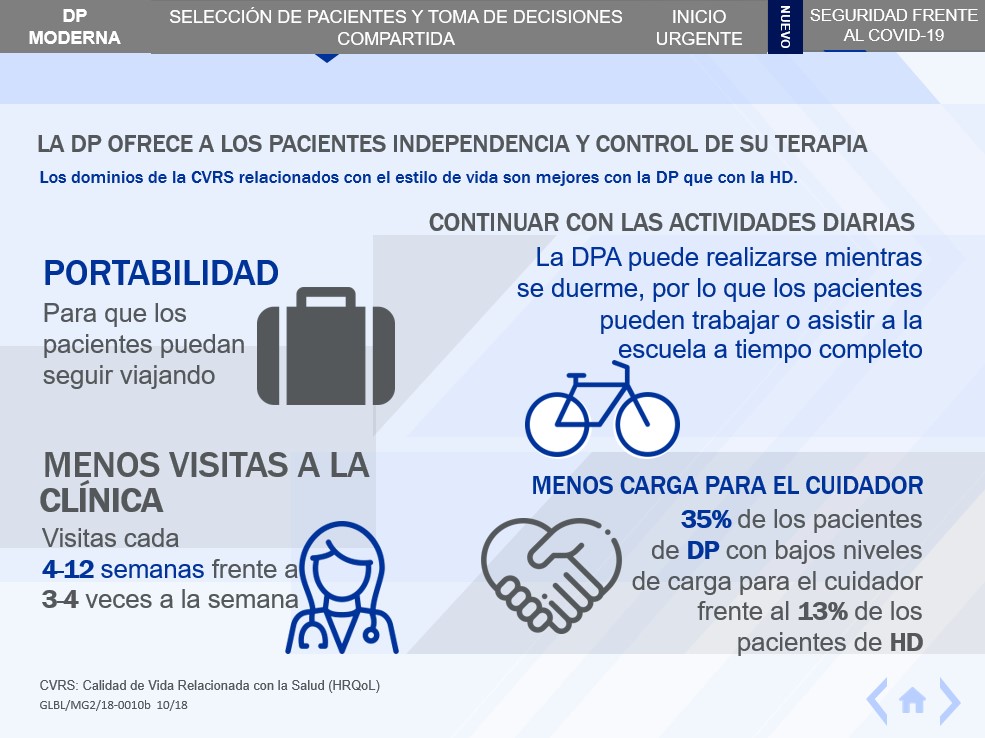 Asimismo es importante indicar que el tratamiento es factible de llevarse a cabo durante la noche, mientras la persona duerme, o durante el día. Así la diálisis domiciliaria ofrece la ventaja de que el paciente tiene la posibilidad de continuar con el desarrollo normal de sus principales actividades y en muchos casos trabajar desde su hogar.