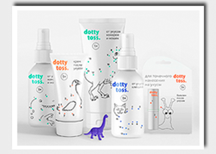 Un proyecto estudiantil le dio un giro al packaging de los repelentes para niños. Se trata de la marca rusa Dotty Toss, que imprimió sobre sus productos dibujos pespunteados.