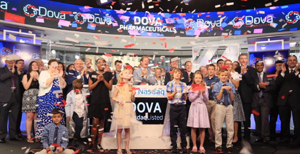 Dova Pharmaceuticals tocó la semana pasada la campana de apertura del Nasdaq. Fue para celebrar su primera oferta pública.