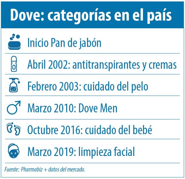 Dove era sinónimo de jabón. Sin embargo ahora ya se instaló definitivamente como trans-categoría. En los últimos 15 años la marca llegó al segmento de los antitranspirantes, el cuidado del bebé, y hasta el masculino.