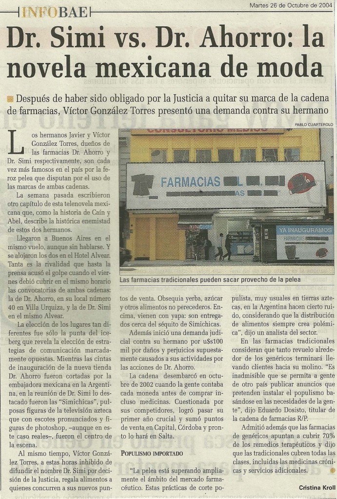 Los hermanos Javier y Víctor González Torres, dueños de las farmacias Dr. Ahorro y Dr. Simi respectivamente, son cada vez más famosos en el país por la feroz pelea que disputan por el uso de las marcas de ambas cadenas.