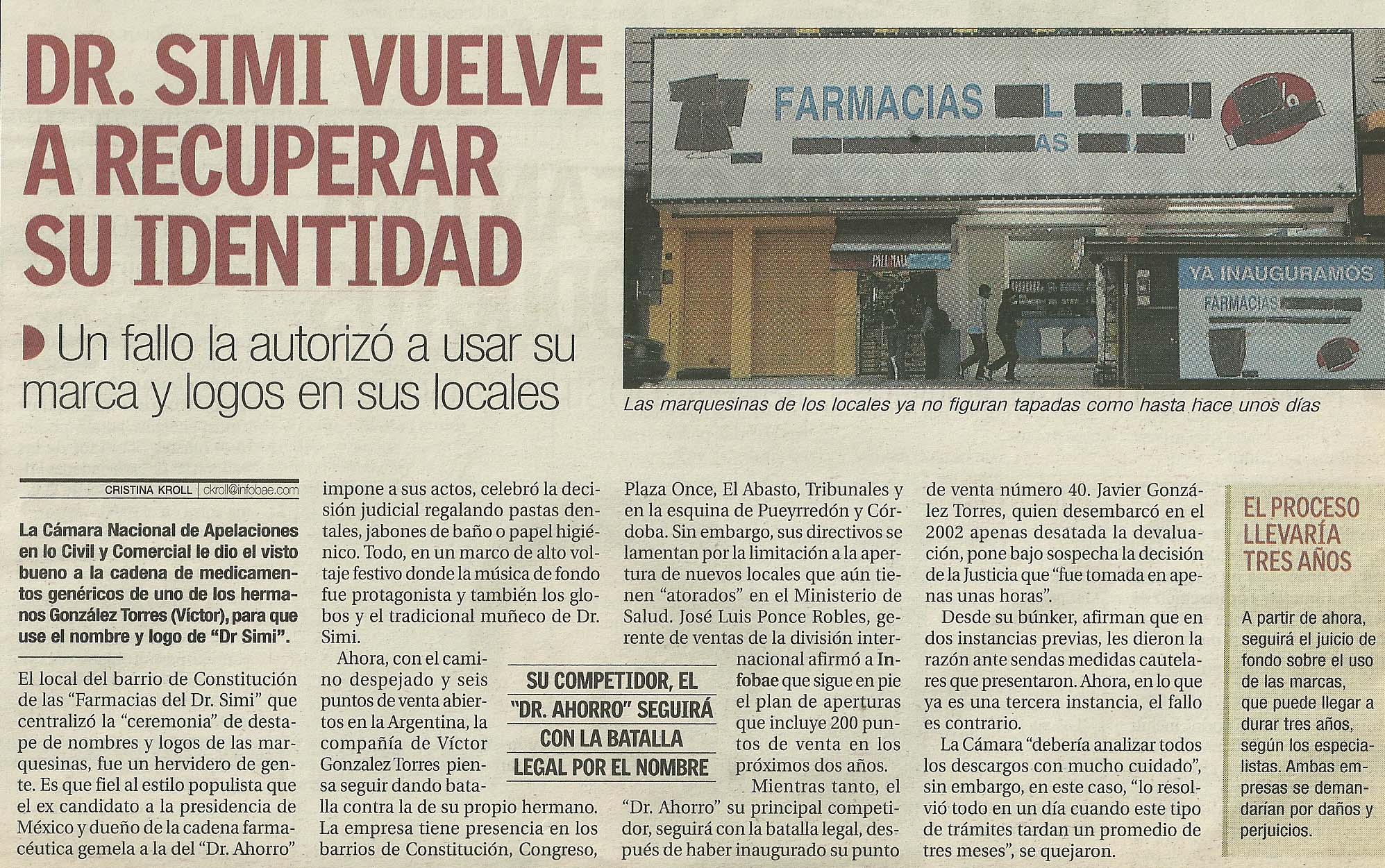 La Cámara Nacional de Apelaciones en lo Civil y Comercial le dio el visto bueno a la cadena de medicamentos genéricos de uno de los hermanos González Torres (Víctor), para que use el nombre y el logo de “Dr Simi”.