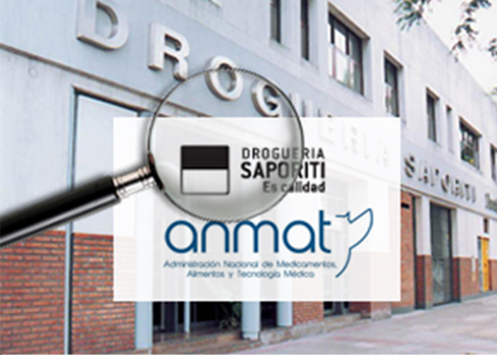 La ANMAT prohibió el uso y comercialización de varios productos originales y propios de la Droguería Saporiti en todo el territorio nacional a excepción de la Ciudad de Buenos Aires y le inició sumario sanitario tanto a la firma como a su directora técnica. Ver Droguería.