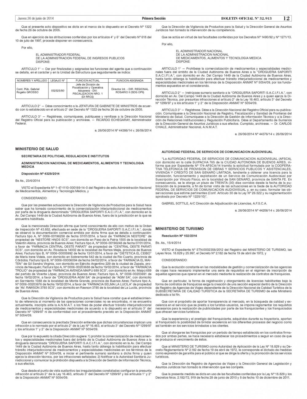 La ANMAT le prohibió a la Droguería Saporiti la comercialización de medicamentos y especialidades medicinales fuera del ámbito de la Ciudad de Buenos Aires a través de la disposición 4329. Ver disposición.