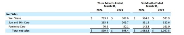 La norteamericana Edgewell Personal Care, la compañía que surgió en el 2015 como un spin-off de Energizer, cerró el primer semestre de su año fiscal 23/24 con una  facturación al alza.