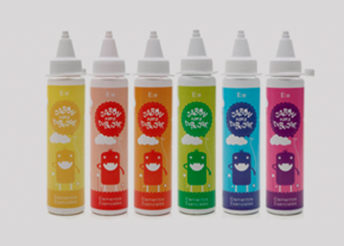 El packaging es similar a los envases de condimentos como mayonesa o mostaza y varían los colores según las diversas fragancias: banana, mango, chicle, y frutilla entre otros.