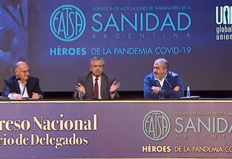 Se trató de un Congreso Nacional Ordinario de Delegados de FATSA encabezado por Héctor Daer en el que el primer mandatario hizo escala antes de partir hacia Europa. Allí el presidente hizo referencia a la necesidad de mejorar el ingreso de los trabajadores. Desde Casa Rosada se destacó asimismo la expresión «voy a trabajar incansablemente para que el bolsillo de los argentinos sea cada día más fuerte«. Además, Fernández agradeció a los trabajadores de la salud por su labor, desde un estrado que justamente tenía como lema «héroes de la pandemia COVID-19«.