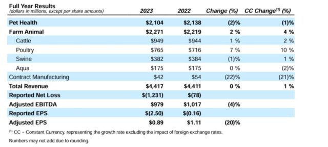 La multi, con sede en Greenfield, en el estado de Indiana, Estados Unidos, registró en 2023 una facturación global de u$s 4.417 millones, apenas u$s 6 millones por encima de los u$s 4.411 que reportó en 2022. Su división de Pet Health cayó un -2% con ingresos por u$s 2.104 millones.