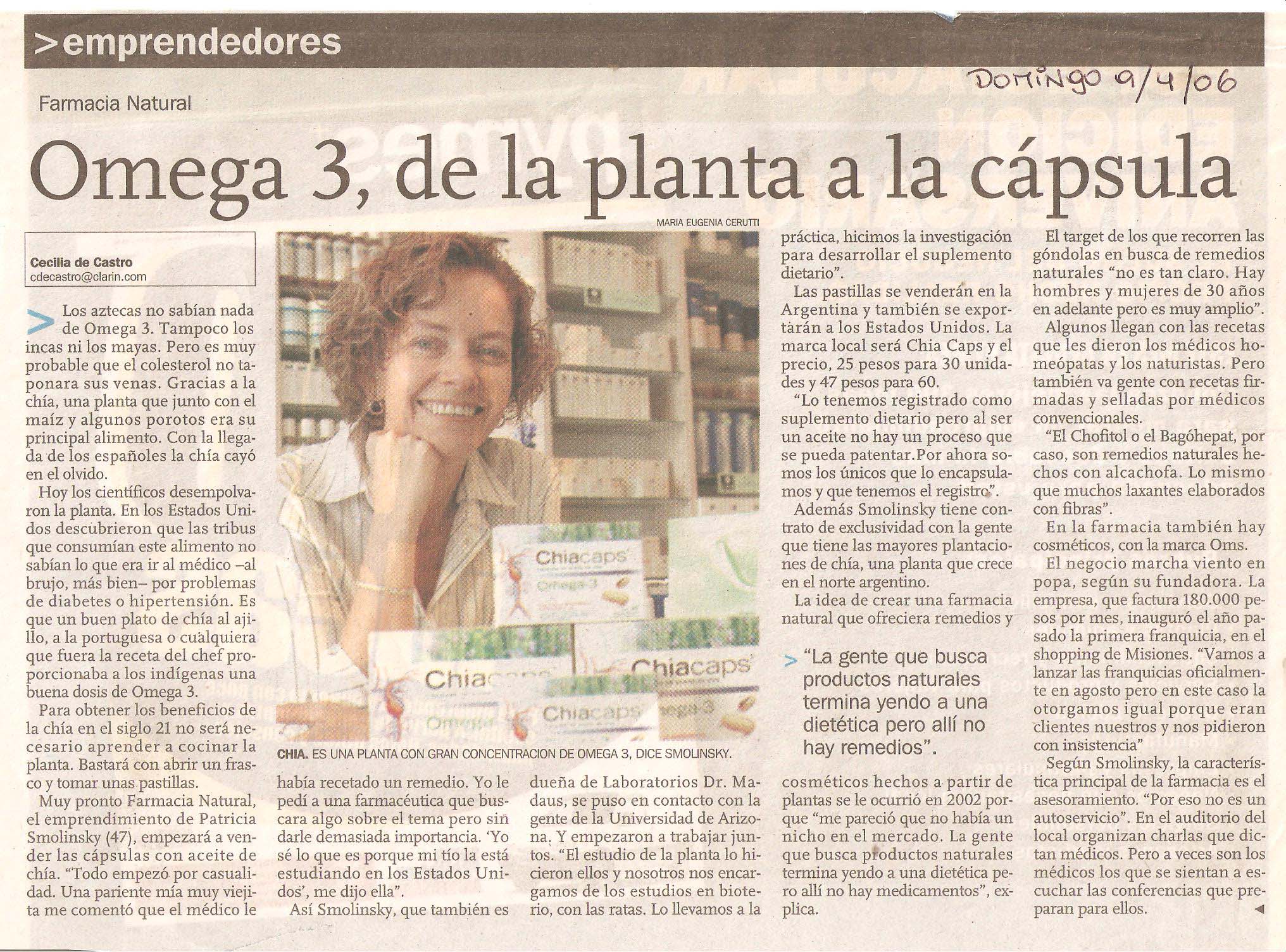 Tres años después, fue lanzado Chiacaps, el primer suplemento dietario a base de aceite de salvia chía. En total, toda la línea, factura cerca de u$s 1.5 millones anuales en la Argentina según las estadísticas de IMS. La compañía en su conjunto factura u$s 1.78 millones. Ver artículo La Nación.