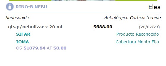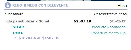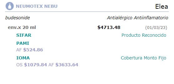 Elea convivirá a su vez con otros competidores, tales como la budesonida DF Nebu, de los nacionales de Denver Farma, y la budesonida HFA del también nacional Lafedar, entre otras. Las ventas de todo el espectro de budesnoidas rondan los $1.880 (u$s 9.1 M) según la auditoría de IQVIA.