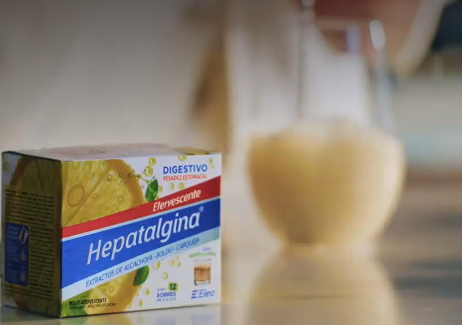 El nacional Elea continúa ampliando el portafolio de Hepatalgina. Ahora la compañía presentó Hepatalgina Efervescente, y en el spot el chef Germán Martitegui lo toma como un trago, acompañado por menta y limón.