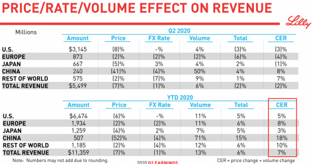 Con respecto a la performance por regiones geográficas, China resultó el mejor mercado para Lilly, mediante un impulso en las ventas del 18% en moneda constante. En segundo lugar quedó lo que la multi norteamericana considera como «resto del mundo», grupo que ascendió un 10%. Ver presentación.