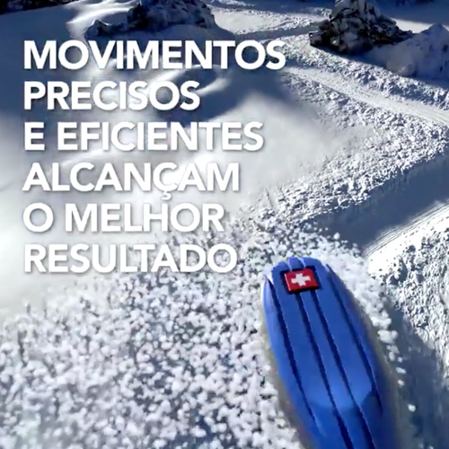 Por caso, su cepillo Ultra Soft es presentado como barrenando una superficie de nieve para demostrar dos aspectos en simultáneo: el mecanismo de acción del producto a la vez que el origen suizo de la firma.