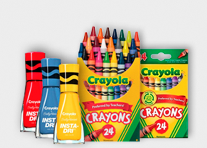 Coty lanzó una línea de esmaltes by Crayola. La misma está bajo su marca Sally Hansen y está centrada en los colores vibrantes de los crayones.