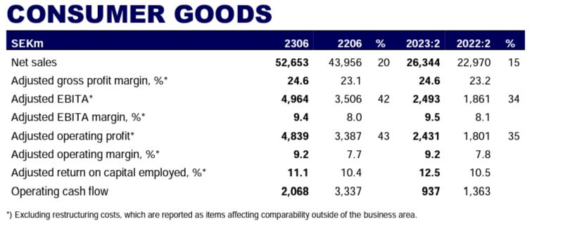 Essity publicó resultados sem. el jue 20/07/2023 a las 7 am CET / 3 am de Arg.