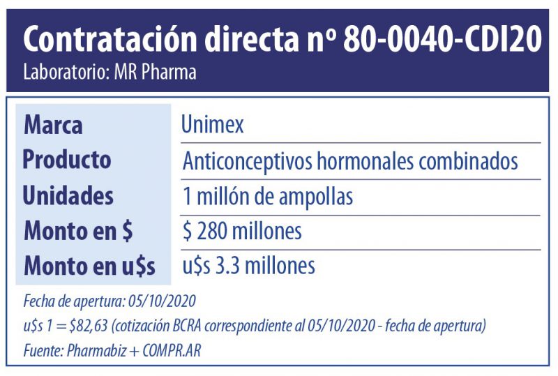 En el día n° 200 de la cuarentena intermitente en el país, el Ministerio de Salud de la Nación puso en marcha una adquisición de anticonceptivos hormonales inyectables. Se trata de una compra para la que se destinarían $280 millones (u$s 3.3 millones) y tiene como contraparte al tercerista MR Pharma.